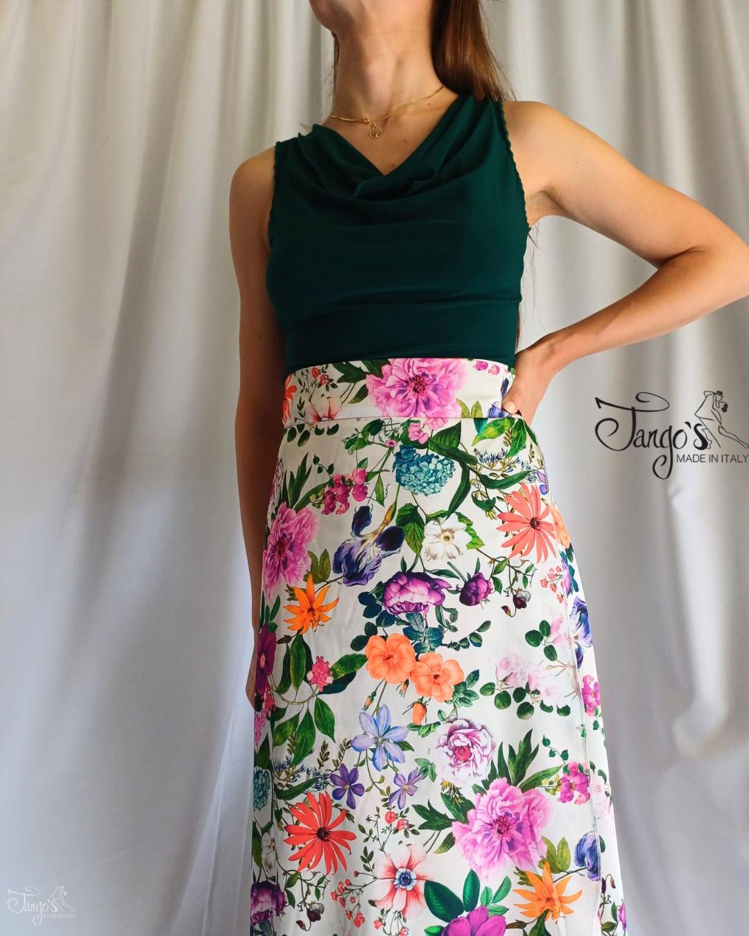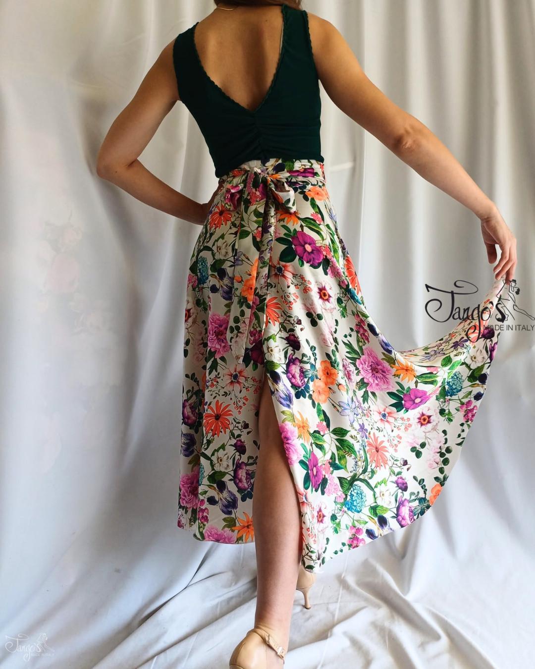 Orfea wrap skirt made of lightweight satin, with a drawstring waist that can be tied at the back or side.