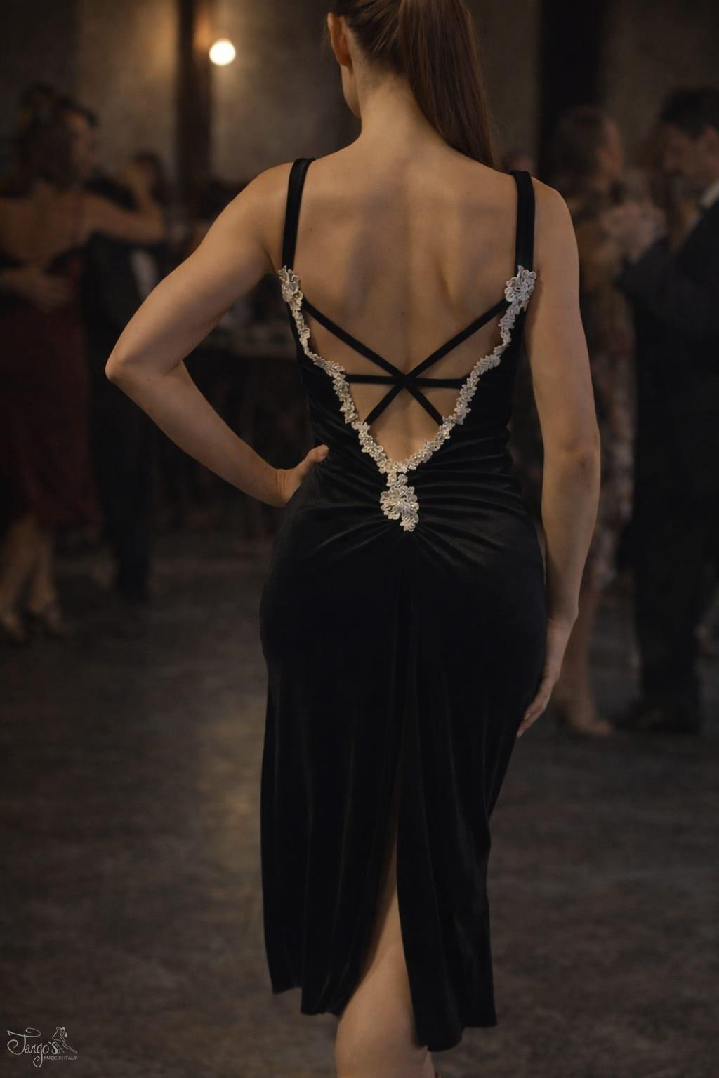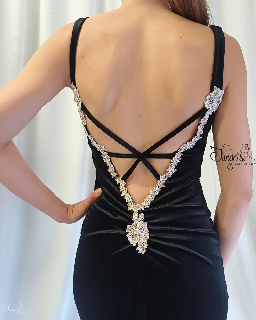 Elegante abito realizzato in velluto nero elasticizzato