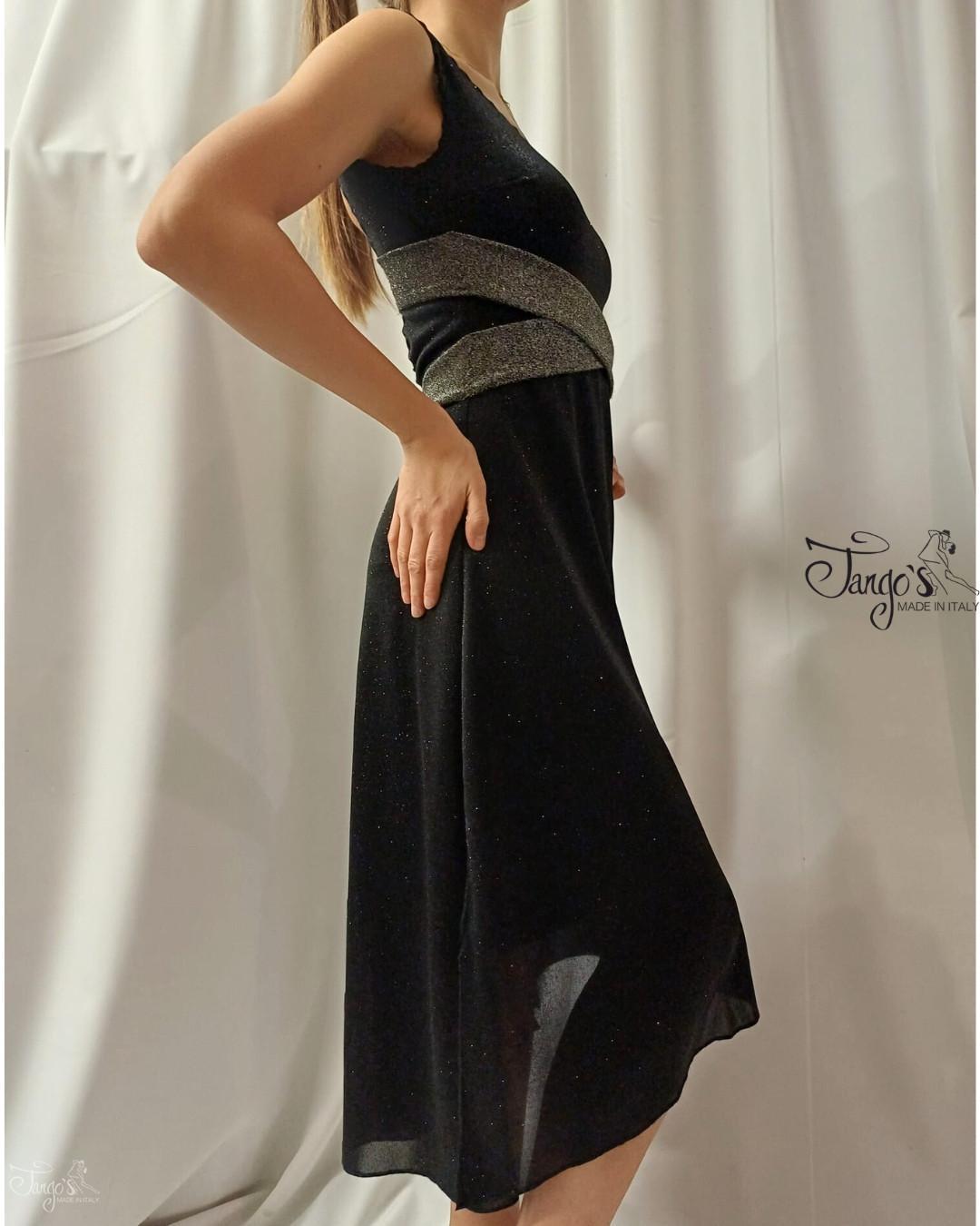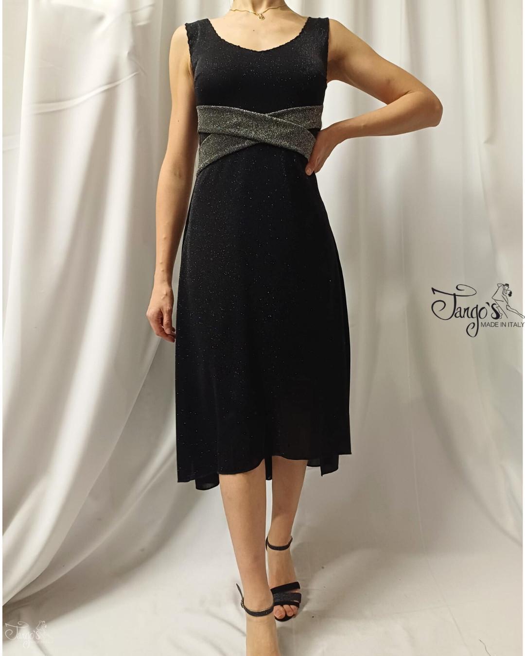 Dress made in particular black stretch jersey, with silver-colored application in bright lurex fabric.