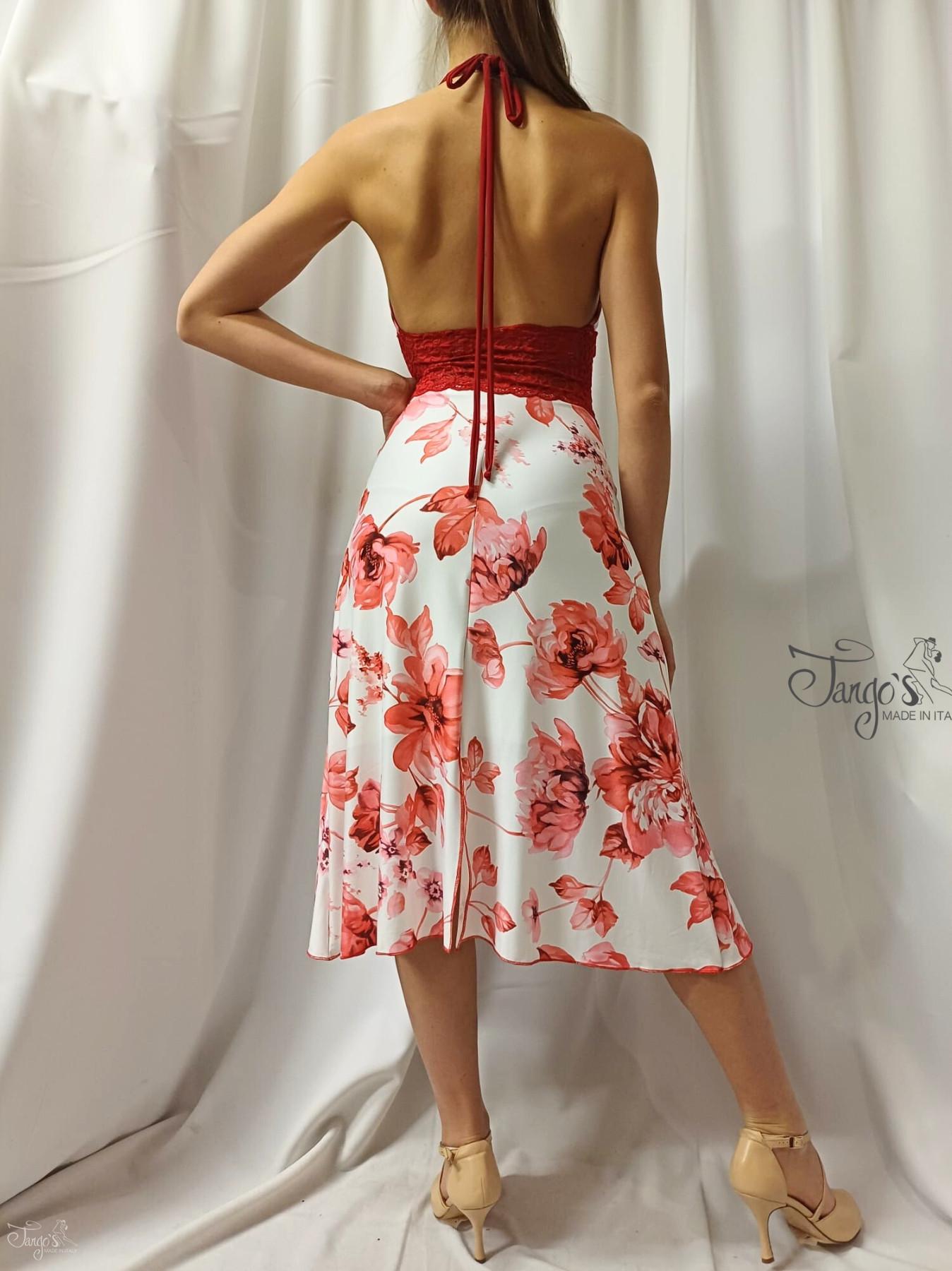 Red lace insert at the waist.