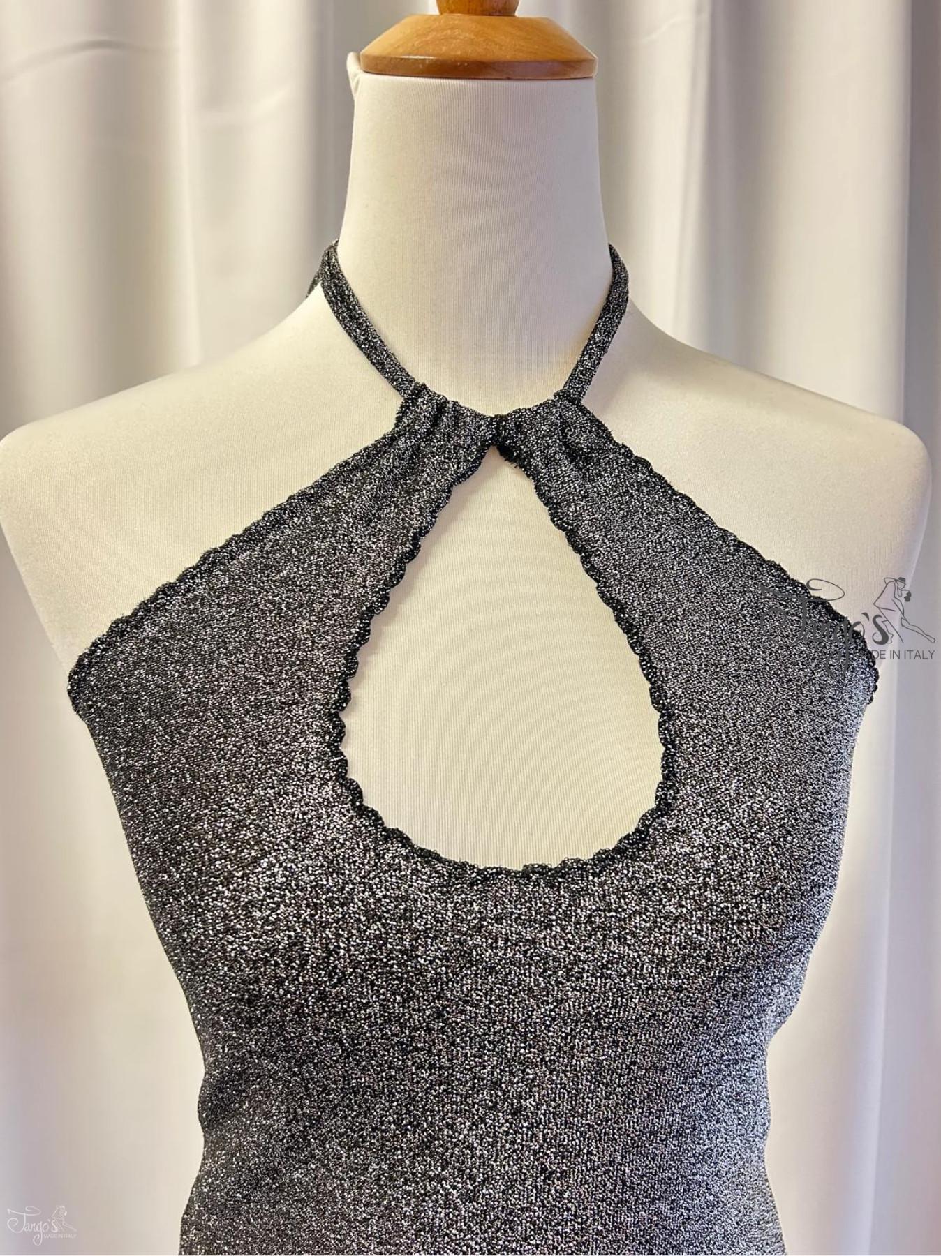 In these images, you can see it paired with our Top Alana in pizzo blu glitter